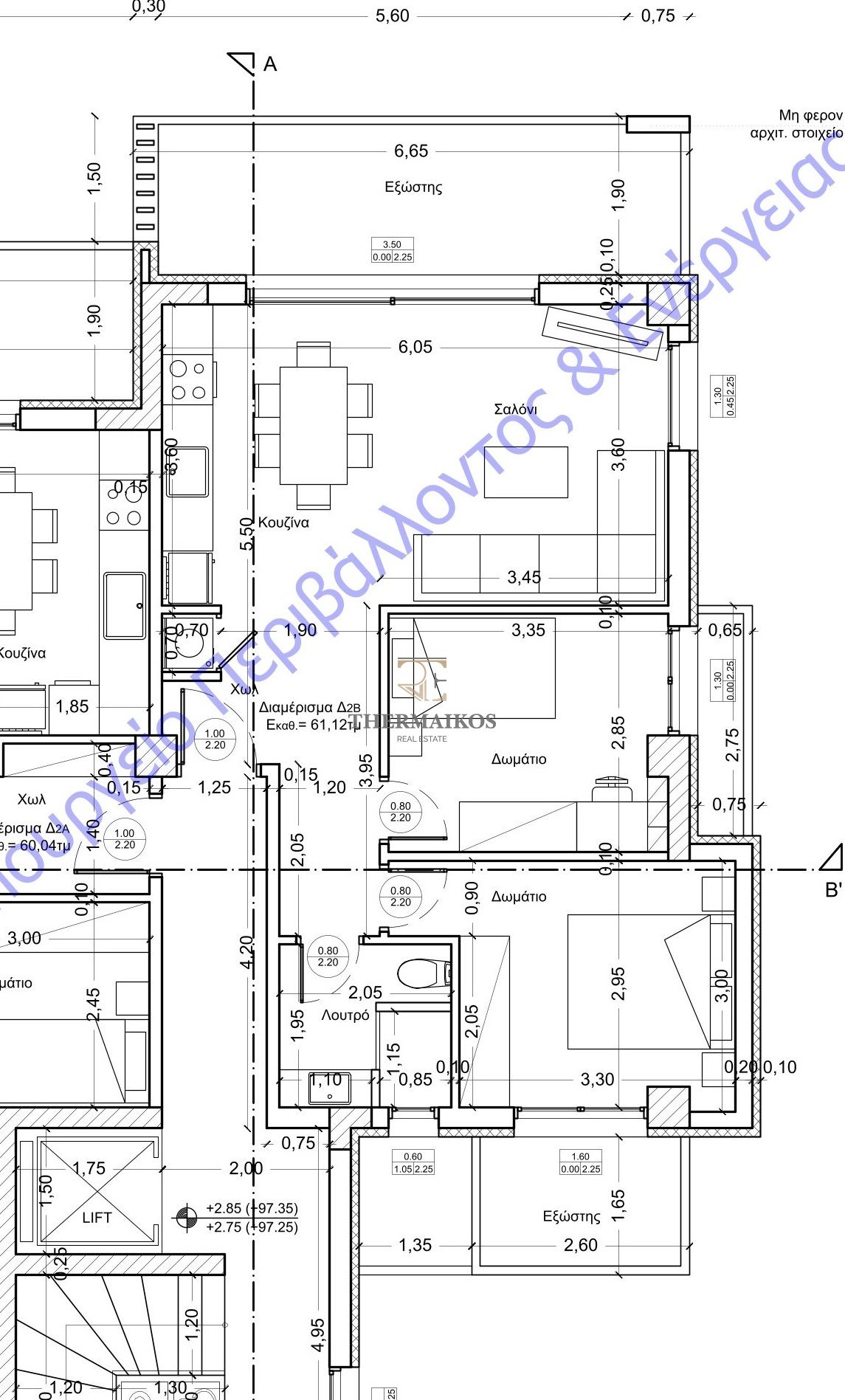 "Πυλαία - Επέκταση" Πωλείται νεόδμητο, διαμέρισμα, πρόσοψης 78,07τ.μ. (61,12τ.μ. καθαρό) Δ2Β Κάτοψη.