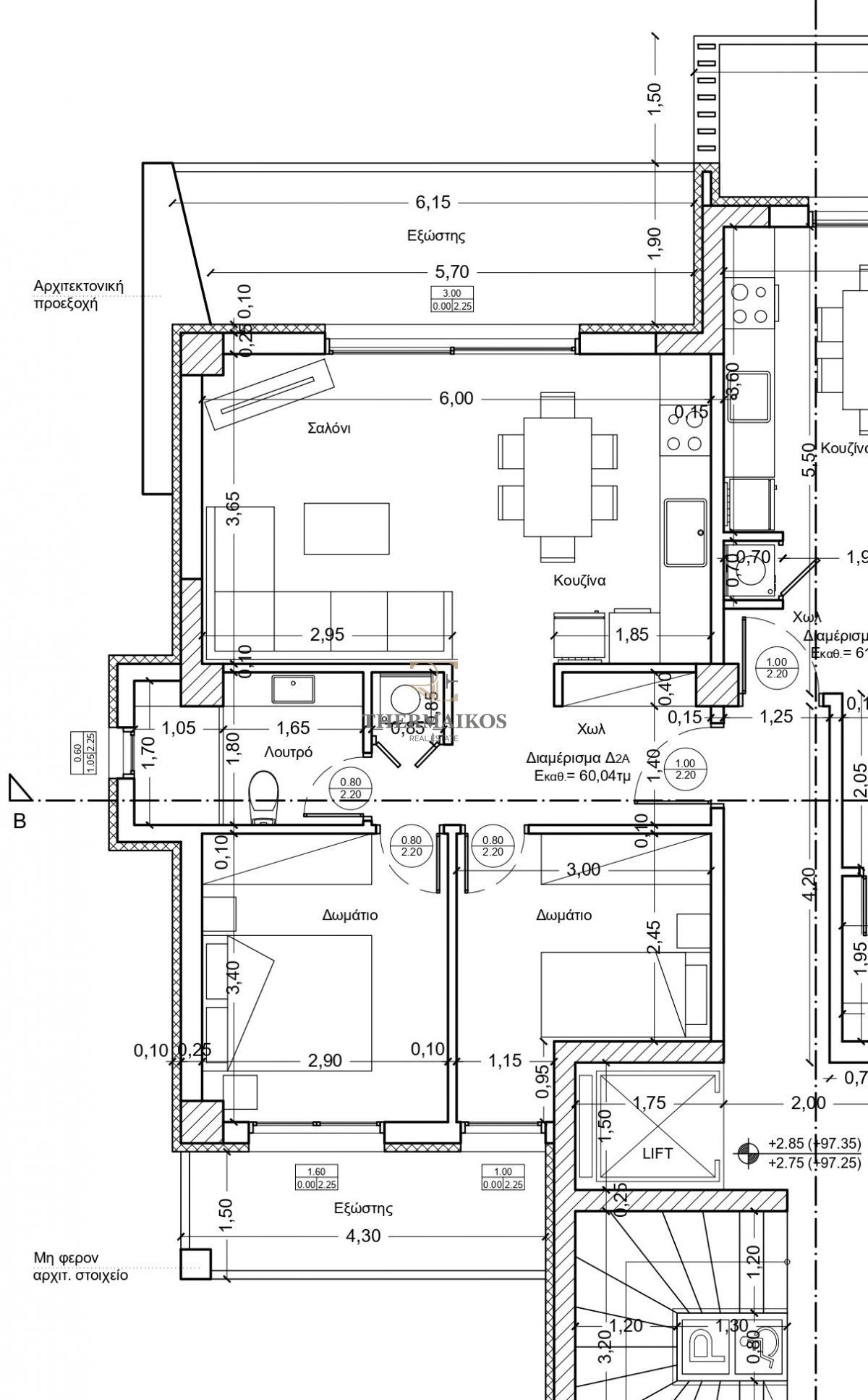 "Πυλαία - Επέκταση" Πωλείται νεόδμητο, διαμέρισμα, πρόσοψης 76,99τ.μ. (60.04τ.μ. καθαρό) Δ3Α Κάτοψη.