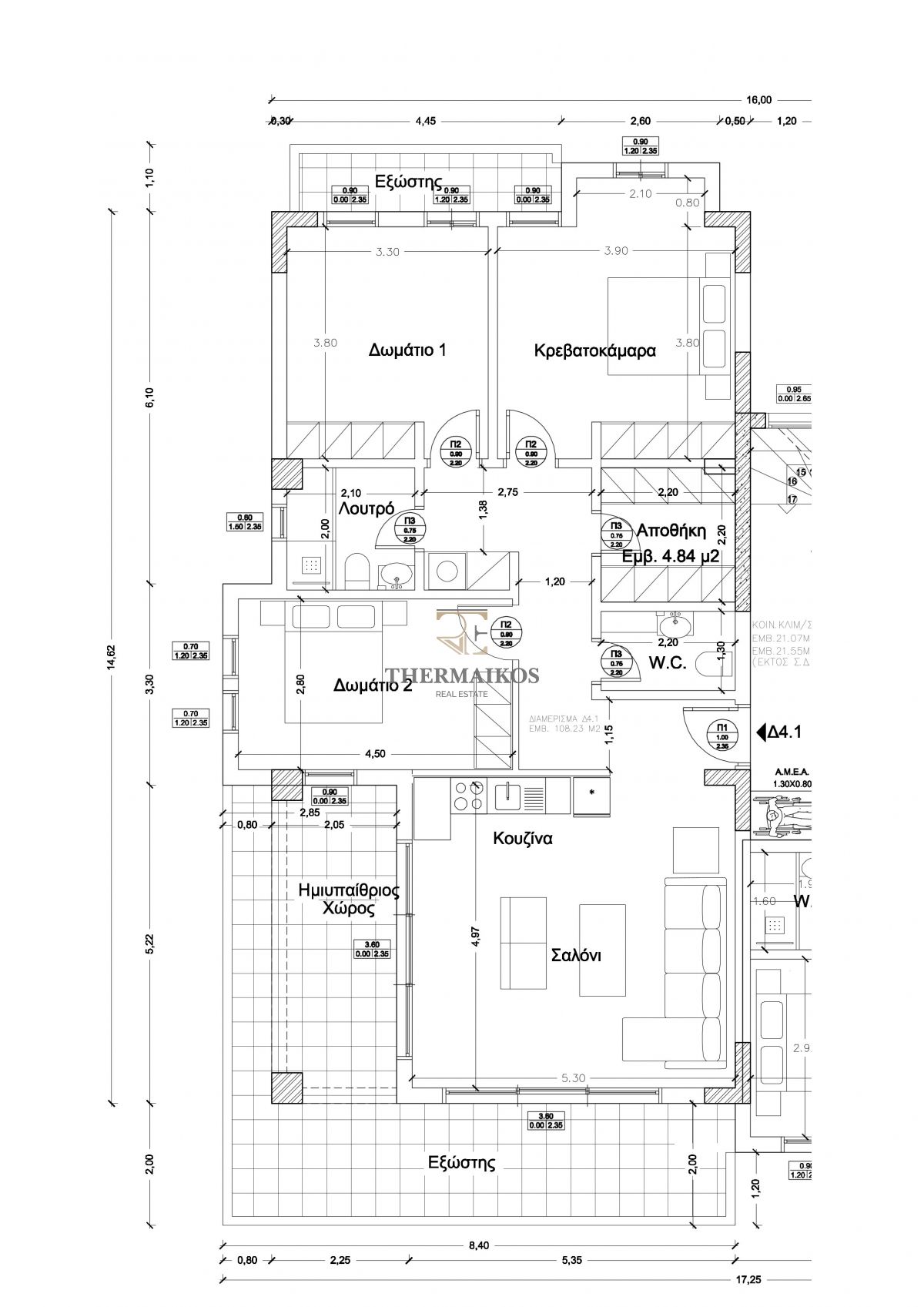 "Καλαμαριά - Άγιος Ιωάννης" Πωλείται νεόδμητο, διαμέρισμα, 127,7τ.μ.(108,23 καθαρά) Δ4.1. Κάτοψη.
