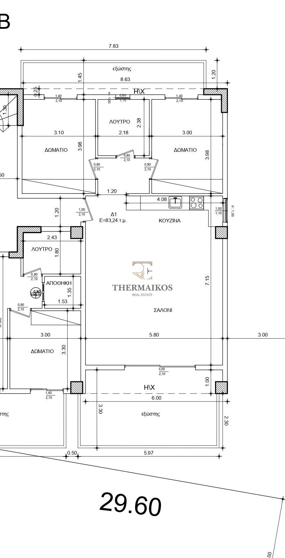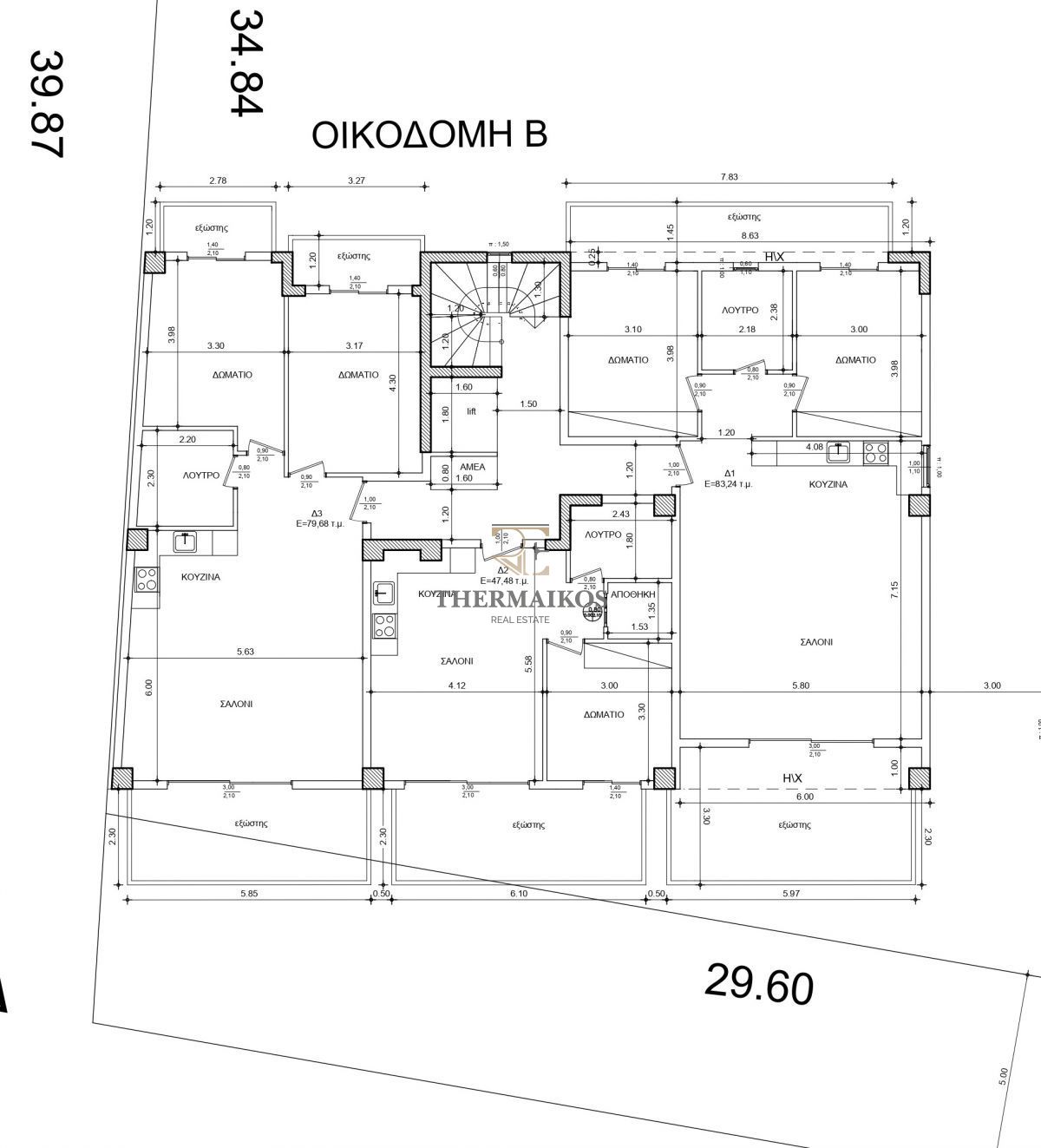 "Θέρμη" Πωλείται νεόδμητο, διαμέρισμα, πρόσοψης 97.39τ.μ. (83,24τ.μ. καθαρά) Δ1 Κάτοψη.
