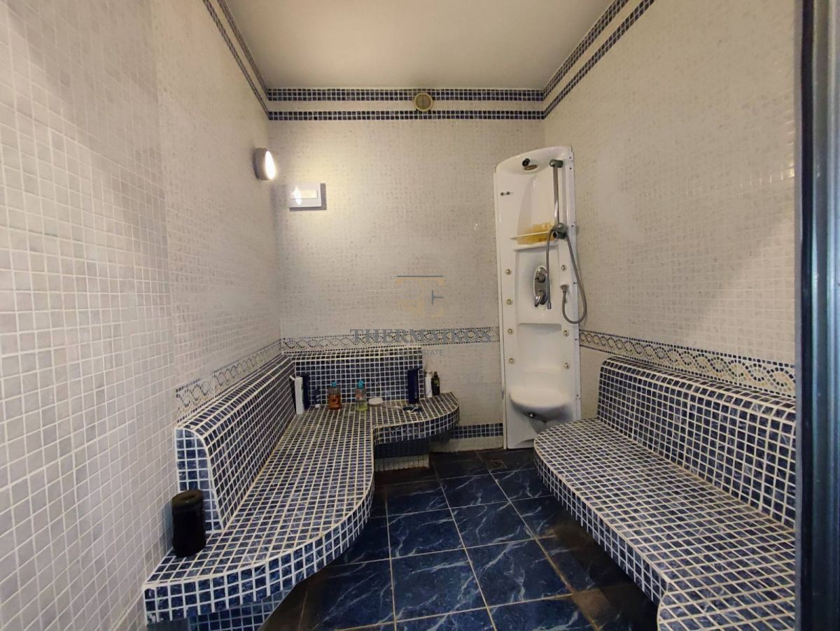 Στο κατώτερο επίπεδο του ακινήτου, η πολυτέλεια και η άνεση συνδυάζονται με τη λειτουργικότητα ενός απόλυτου χώρου αναψυχής και ευεξίας. Η θερμαινόμενη πισίνα, με τον εκλεπτυσμένο σχεδιασμό της, συνδέεται άμεσα με το χαμάμ και το γυμναστήριο, προσφέροντας στον ιδιοκτήτη τη δυνατότητα να χαλαρώσει ή να ασκηθεί σε έναν ιδιωτικό και πολυτελή χώρο. Ο χώρος γραφείου είναι ιδανικός για επαγγελματίες που επιθυμούν να συνδυάσουν εργασία και προσωπική ζωή σε ένα άνετο και ήρεμο περιβάλλον. Το σαλονάκι και το WC στο επίπεδο αυτό ολοκληρώνουν τη μοναδική εμπειρία του χώρου.