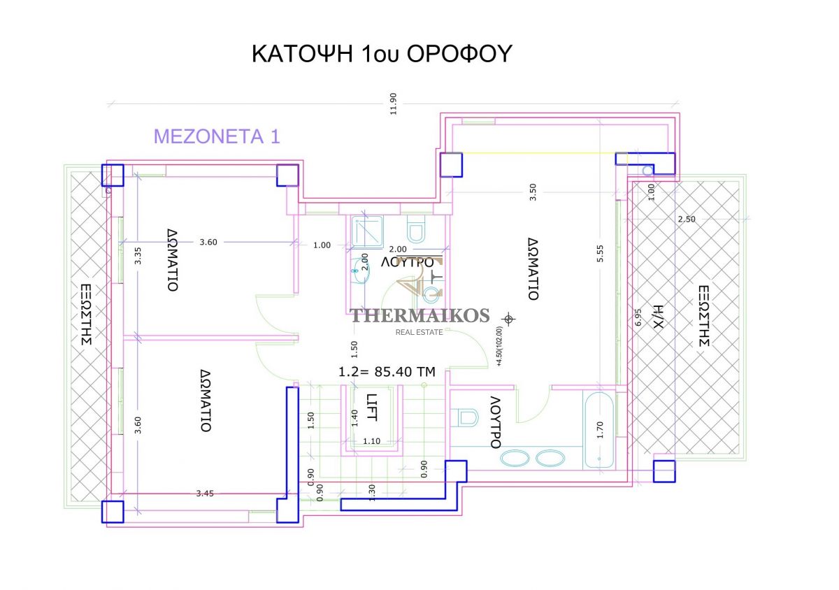Στην αναπτυσσόμενη περιοχή της Επέκτασης Θέρμης διατίθεται υπό κατασκευή Μεζονέτας 200 τ.μ., Ισογείου-1ου ορόφου και σοφίτας, ενεργειακής κλάσης Α+. Αποτελείται από τέσσερα υπνοδωμάτια, φωτεινή σαλόνι και κουζίνα τρία μπάνια και ένα wc, προσφέροντας άνετους και λειτουργικούς χώρους λόγω της εργονομικής διαρρύθμισης του.