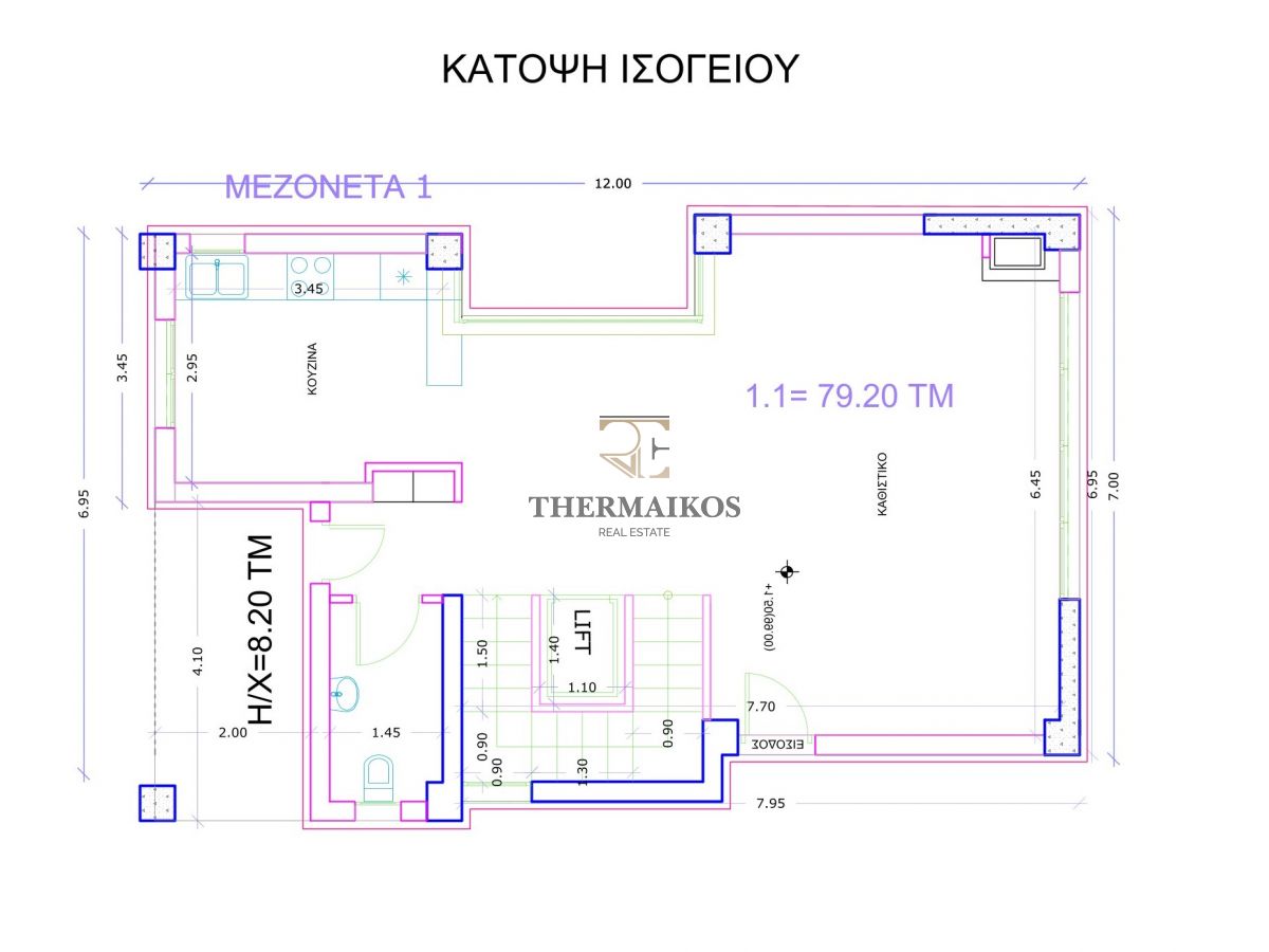 •Ισόγειος όροφος 79,20 τ.μ. (κουζίνα,σαλόνι,wc)