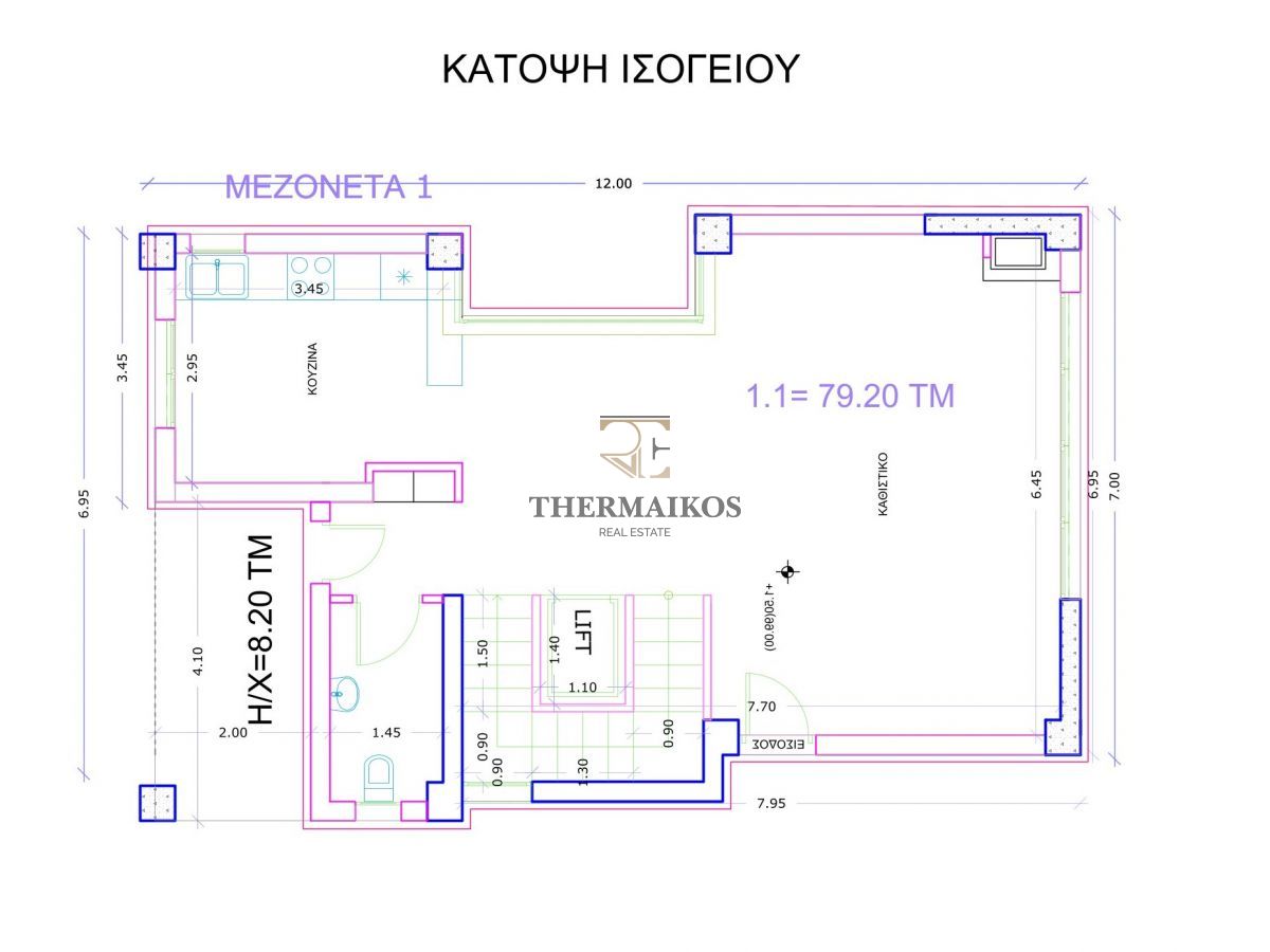 •Ισόγειος όροφος 79,20 τ.μ. (κουζίνα,σαλόνι,wc)
