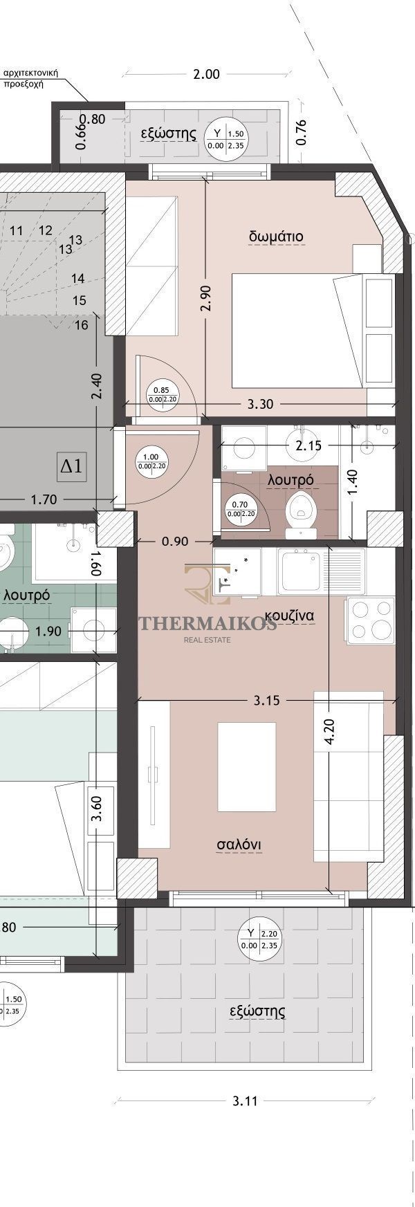 "Τούμπα - Κάτω Τούμπα". Πωλείται νεόδμητο, διαμέρισμα, πρόσοψης 43.55τ.μ. (Δ1 κάτοψη).