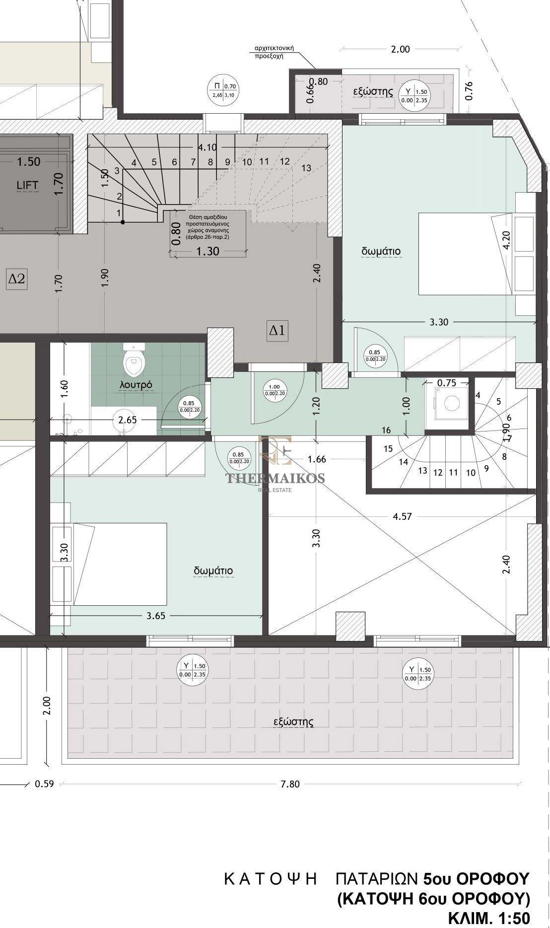 -Βρίσκεται στον 5ο-6ο όροφο της οικοδομής και διαθέτει ασανσέρ.