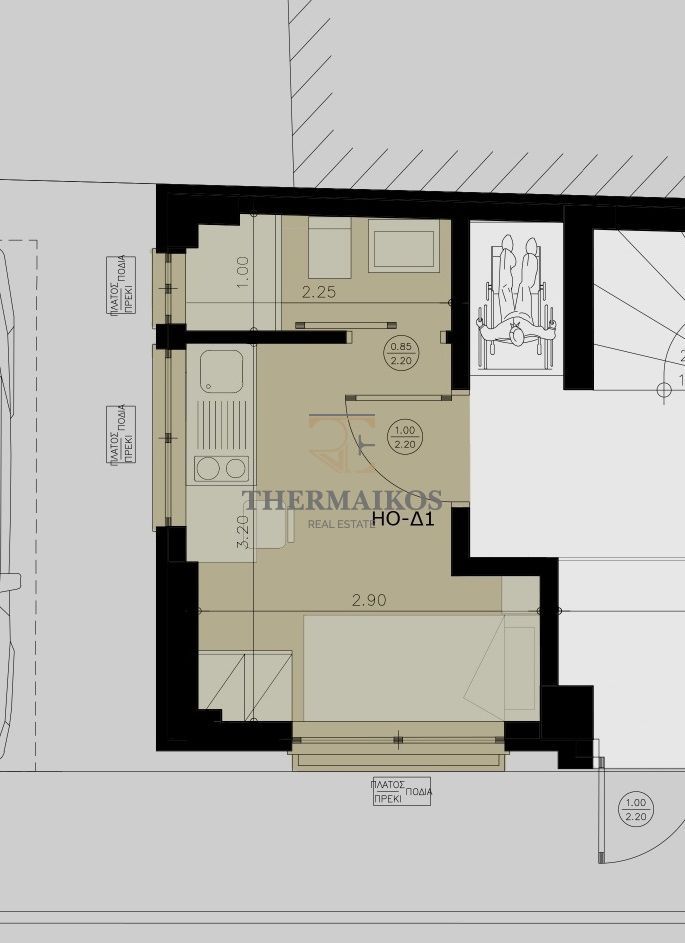 "Τούμπα - Παπάφη" Πωλείται νεόδμητο, Studio πρόσοψης συνολικού εμβαδού 21τ.μ. (Δ1 Κάτοψη).