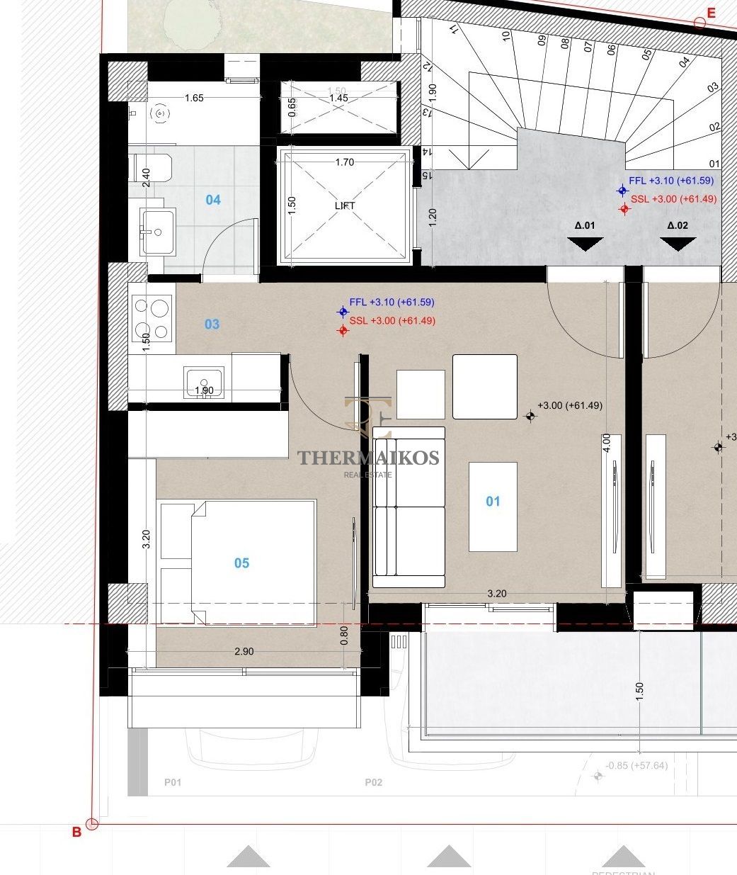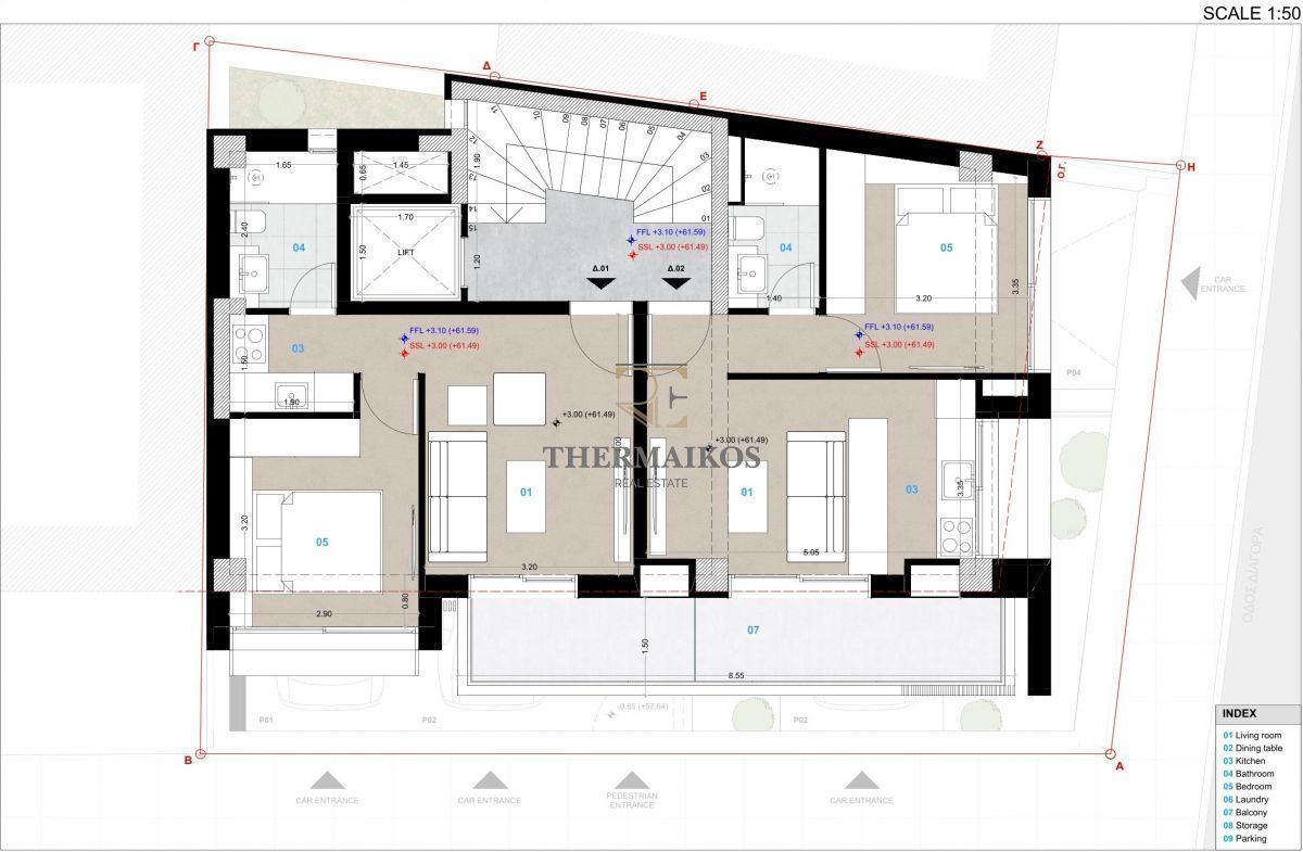"Τούμπα - Κάτω Τούμπα" Πωλείται νεόδμητο, διαμέρισμα, πρόσοψης 55 τ.μ. Δ1 στην κάτοψη.