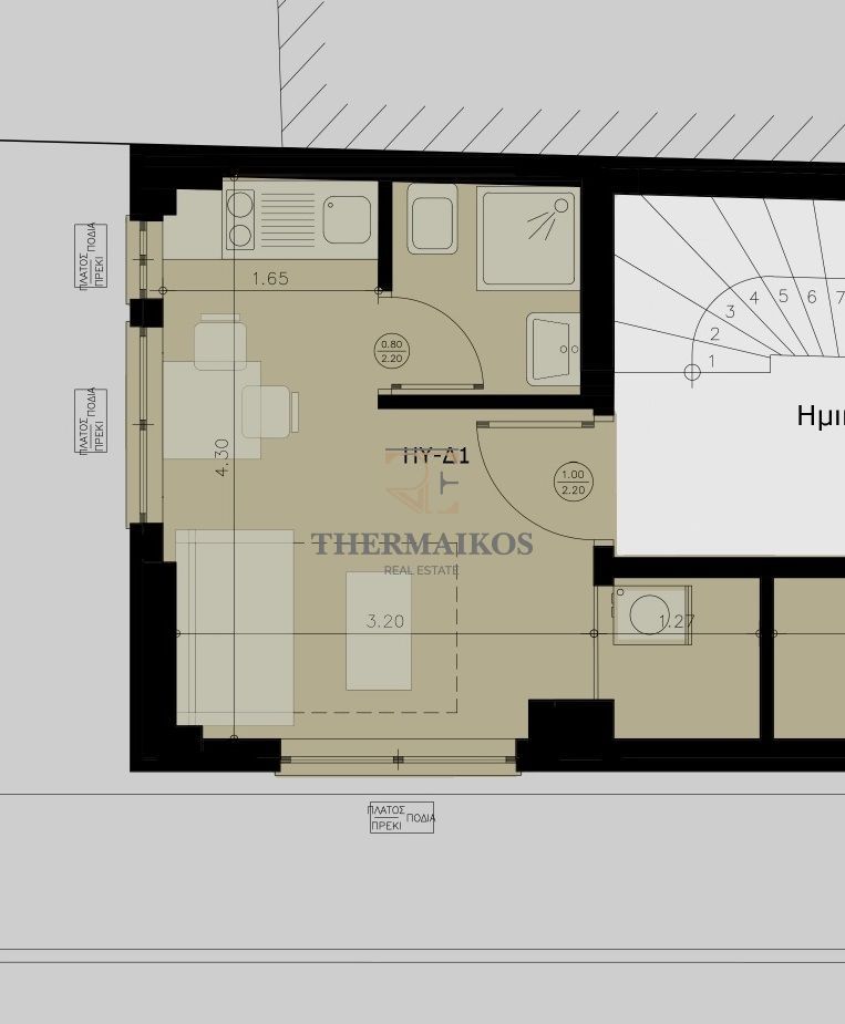 "Τούμπα - Παπάφη" Πωλείται νεόδμητο, Studio πρόσοψης συνολικού εμβαδού 27τ.μ. (Δ1 Κάτοψη).