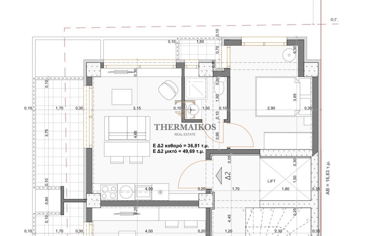 "Τούμπα - Άνω Τούμπα" σε πολύ καλό σημείο Πωλείται νεόδμητο, Διαμέρισμα, πρόσοψης 49,69τ.μ. (36.81τ.μ. καθαρό).
