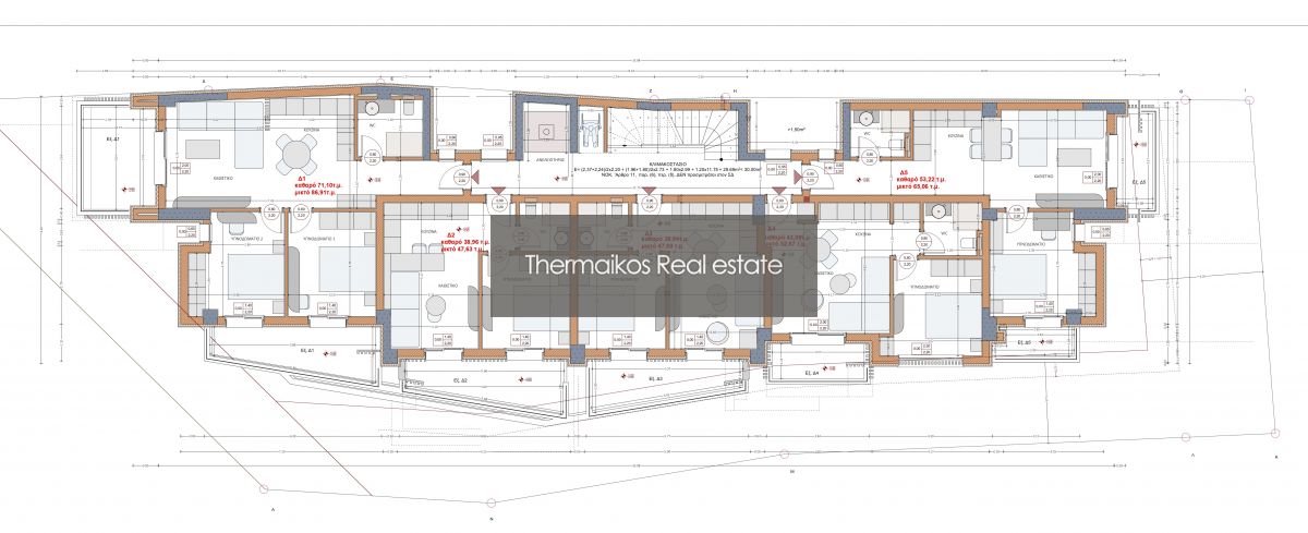 "Θέρμη - Κέντρο" Πωλείται νεόδμητο, διαμέρισμα, πρόσοψης 86.91τ.μ. (71,10τ.μ. καθαρά), Δ1 Κάτοψη.
